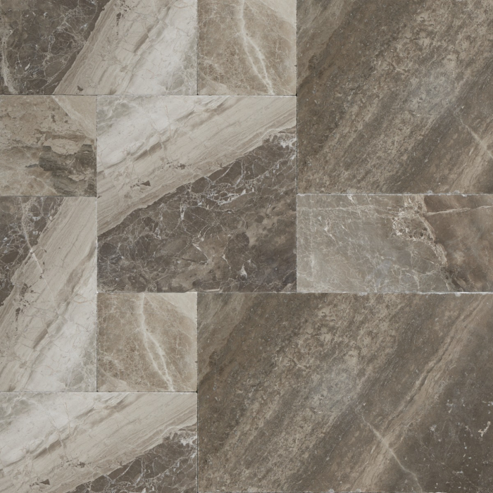 Zestaw płytek z marmuru w formacie Roman Opus (0,742 m²) umożliwia stworzenie spójnego, powtarzalnego wzoru o wyrazistym rysunku i naturalnej kolorystyce, z subtelnym efektem postarzenia. Odpowiednie na posadzki, ściany i podłogi.